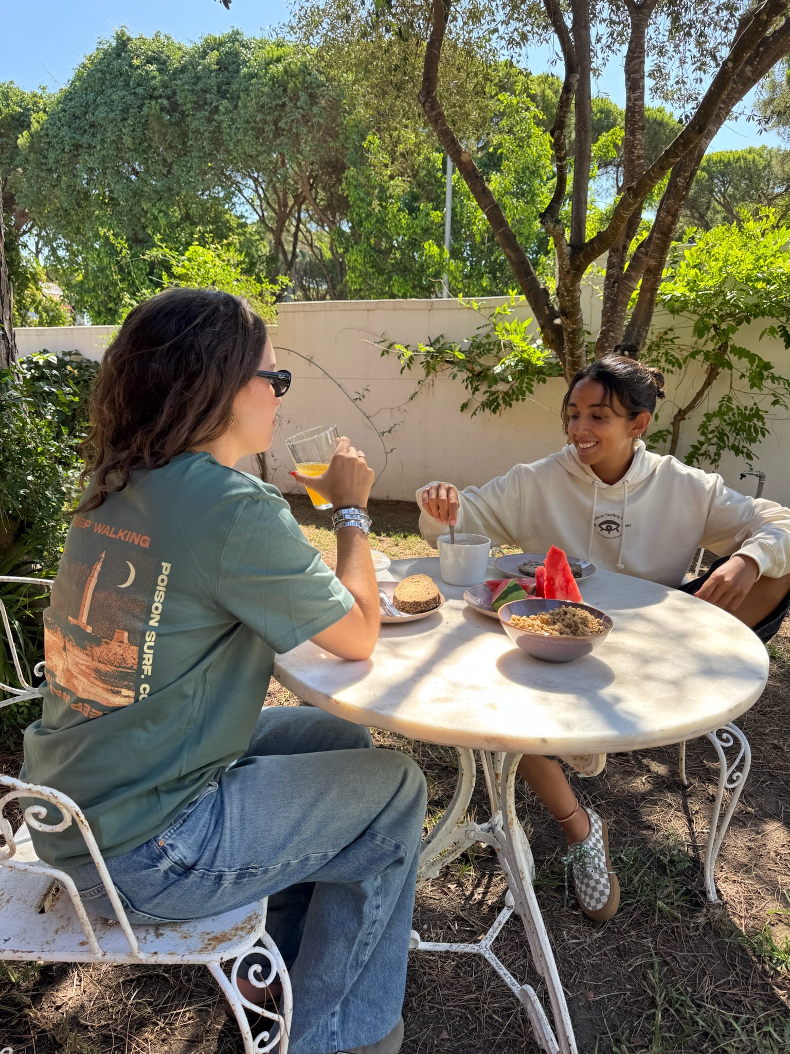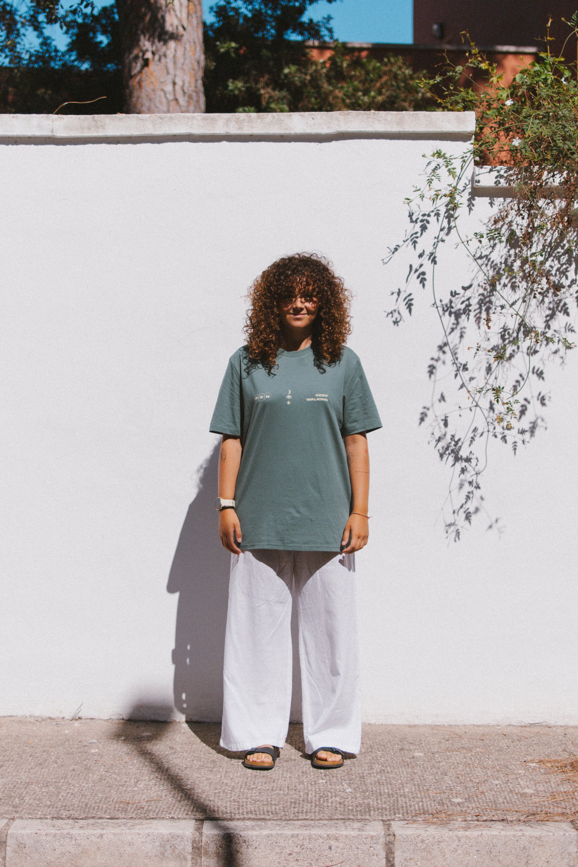 Además, la serigrafía se hace en nuestro pequeño taller en Chiclana de la Frontera, en la playa de La Barrosa, donde usamos tintas veganas y de procedencia local.